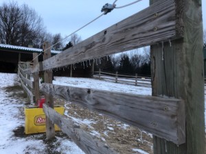 Speaking of our fences, I am surprised at the resilience of our high tensile wire fence. Despite the heavy pressure on the top wire of a section where one of the larger trees landed, no damage resulted. After I cut the tree into pieces, the wire returned to its original appearance. At our cold temperatures, I expected the stretch would have remained and required re-tensioning of the top wire.