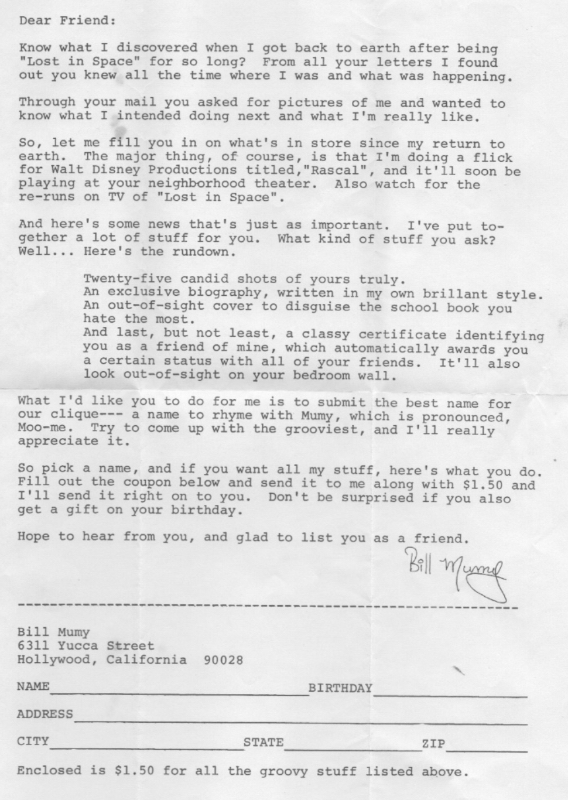 That’s Bill Mumy from “Lost in Space.” Cyndie saved the letter and it is such a hoot, I scanned it to share.