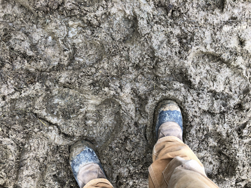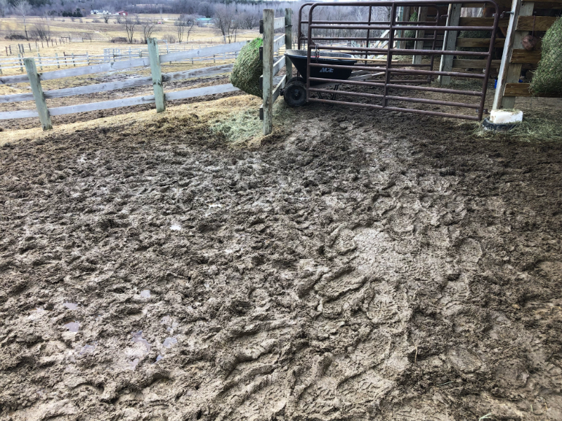 If there is any consolation to be found in the mud we are currently enduring in the paddocks, it’s the fact that it isn’t very deep. Now, I’m not sure how much of that is a result of the underlying frost that has yet to thaw or the base of limestone screenings we’ve established over the years.
