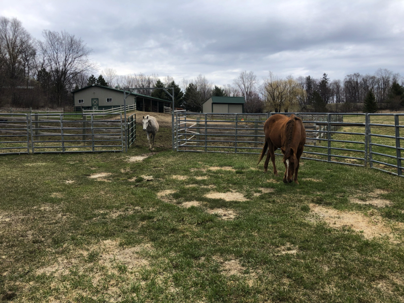 The horses pack the ground so densely that it’s hard for the grass to grow. Never mind that grass seems perfectly able to grow through our asphalt driveway.