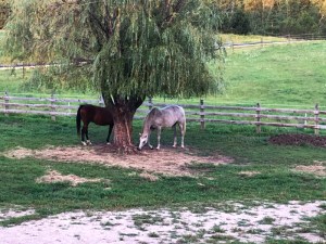 Light had stepped out of frame by the time I snapped the shot on the right showing Mia grazing in the larger paddock. On the left, Mix and Swings wanted to be by the willow tree they haven’t had access to for a few days.