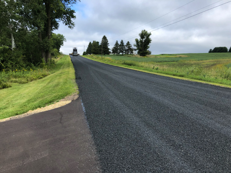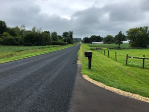 Yesterday morning, while we were preparing to leave for the lake, our township road crew showed up to seal-coat our aging street. It is the perfect complement to our new asphalt driveway.
