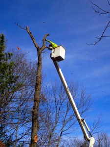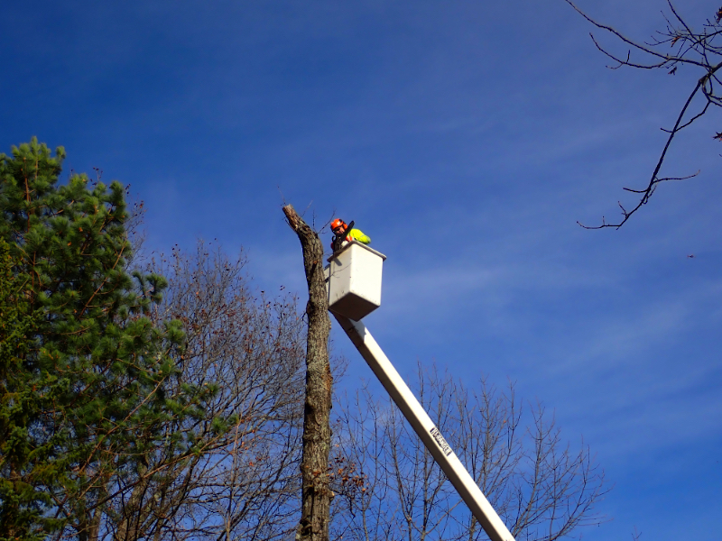 His only faux pas was letting go of his handhold on the chainsaw one time when he thought it was in the pocket of his bucket, but it wasn’t. Luckily, it landed harmlessly in the pile of debris below and he calmly navigated the bucket down to the truck, climbed out, walked around the truck to pick up the saw, and then when right back up to finish the job as if he meant to do that.