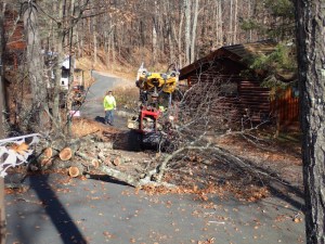 You can color me duly impressed by the grand tree-cutting performance for which we had front-row seats yesterday. A large crew of workers with an impressive assortment of equipment showed up at sunrise and started their third day of work on the collection of properties that make up our Wildwood Lodge Club association.