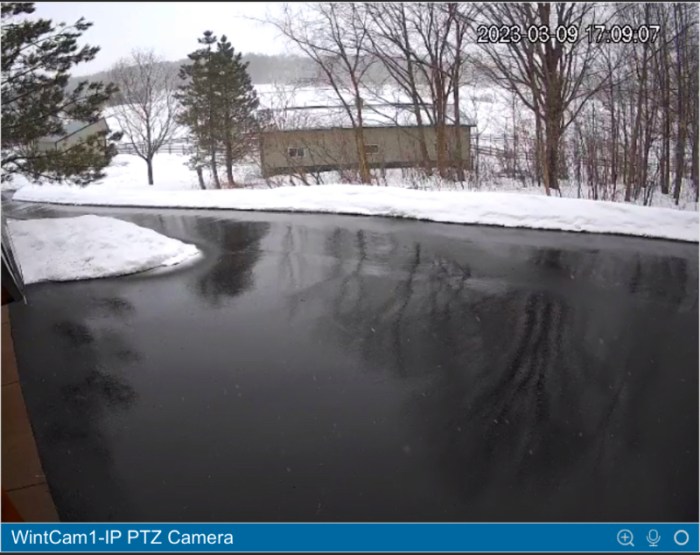 Despite a day-long spitting snowfall making work a challenge of really cold hands, the camera is up and running and I now have a live view available on my phone or our computers.