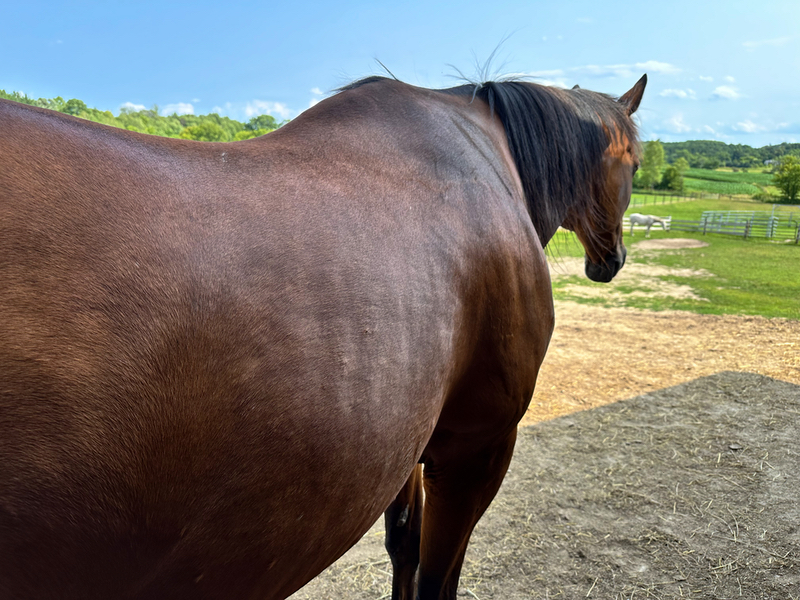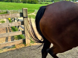 Throughout the spring and summer, the horses go through phases of showing emphatic frustration with being harrassed by flies and stoically tolerating their persistent presence. I stood for a while yesterday and watched Swings manipulate her tail. A horse swishing their tail is a quintessential aspect of the animal.