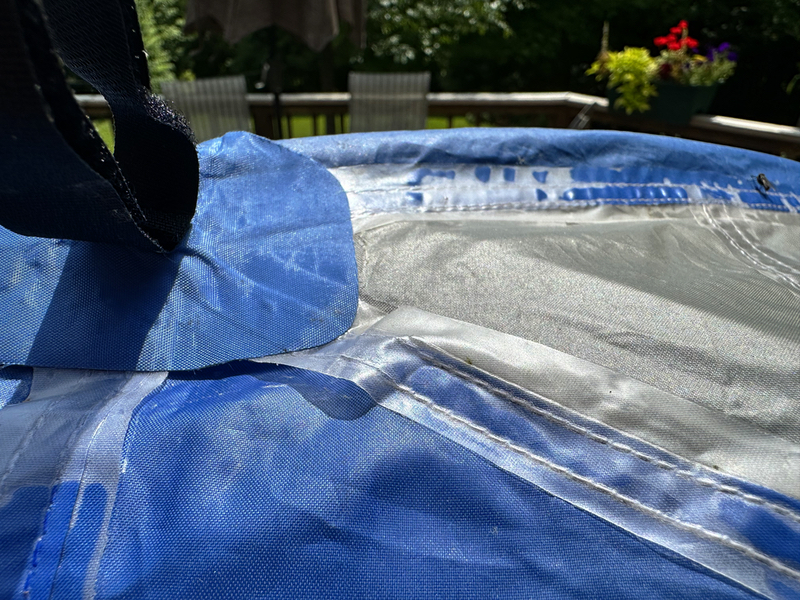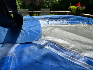 It didn’t take long to decide I wasn’t up for the challenge. There are just too many places where the original tape has lost contact with the fabric. Also, I’m not certain which version of a seam sealer would match the fabric. Urethane or silicone?