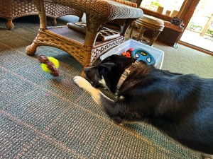 Whatever it takes to keep his mind busy solving entertaining challenges that don’t consume our life savings is worth a try in my view. We don’t want this dog to destroy our financial future. [I’m exaggerating, I hope you’ll know…]