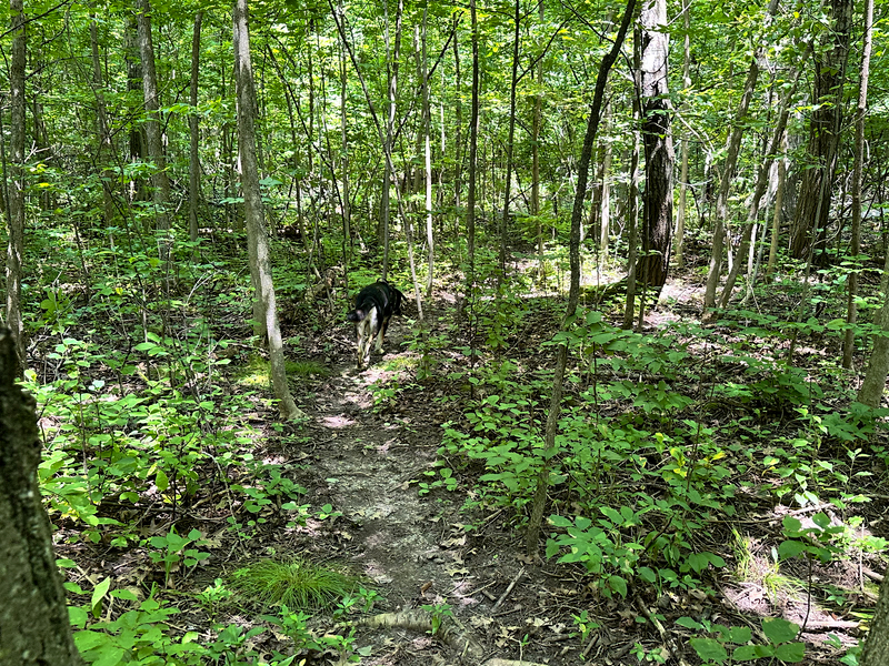 Walking Asher unleashed through our woods yesterday, I took a picture of him trotting in front of me because he was so calm and happy. I was even happier because he stayed on the trail and was not manic about the sights and smells constantly vying for his attention.