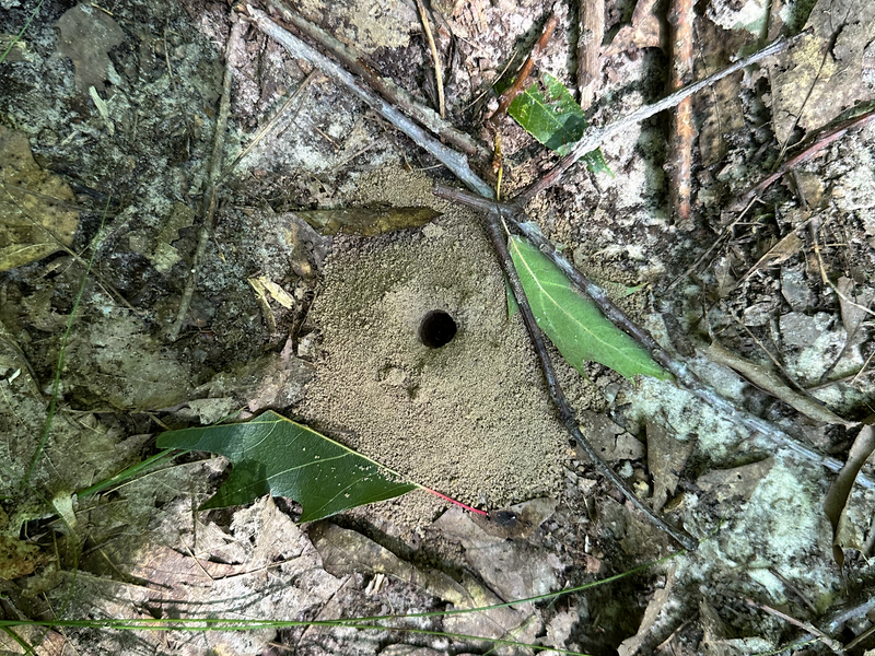 I’ve seen bees disappear into a hole in the ground but I’ve not seen the ant-like piles of granules with the perfect pencil-sized hole on top like these.