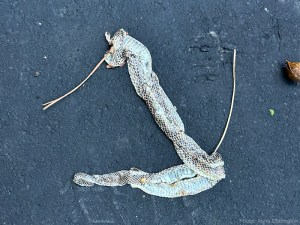 One downfall, however, I won’t have my hero around to soothe my nerves in the case of any unwelcome close encounters with our resident snakes. It’s as if they’re slithering in herds these days. Anna, our animal sitter over the weekend, sent us a picture of a disgustingly large shed snake skin that showed up on the driveway. [shudder]
