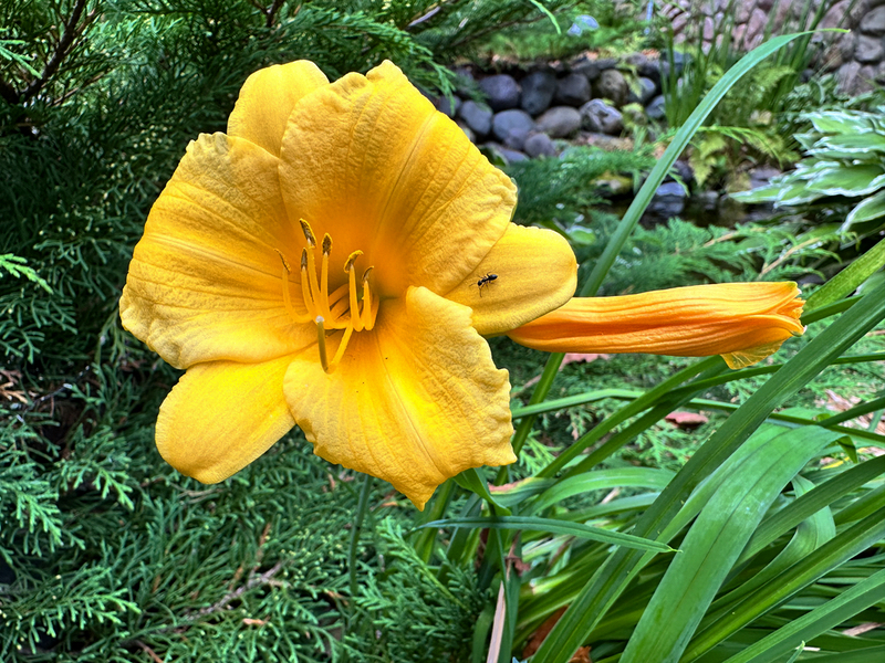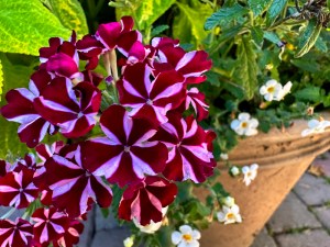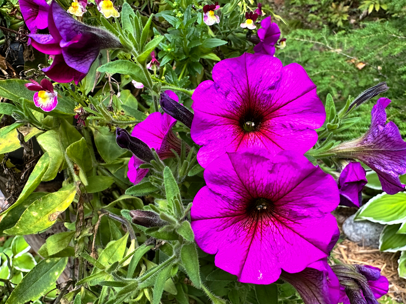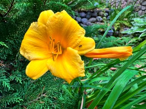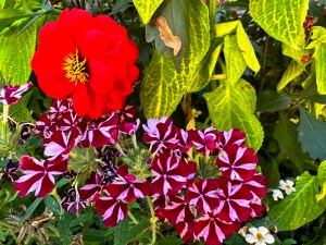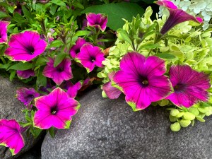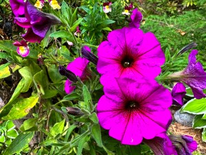 Shorter hours of daylight are becoming more noticeable but the colors of summer flowers are as vibrant as ever around the house at the lake. Not that the length of a blossom isn’t limited. I took a picture of one bright flower when I arrived last Thursday and then noticed how quickly the look of the whole planting had changed by last night.