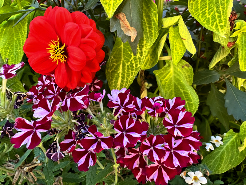 There were plenty of colors still glowing from the plantings Cyndie and Marie and helpers installed around our landscape in the spring.