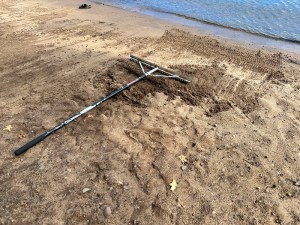 After a substantial dousing of rain a couple of days ago, we were dismayed to see how much of the beach sand had washed away into the lake. It happens all the time but is no less disturbing to see the large rocks and hard soil exposed where it was previously soft sand. Even though the DNR is against adding new sand to the shoreline, that seems to be a fix that is called for in these instances.