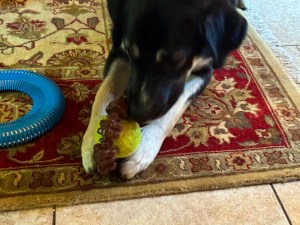 He didn’t seem as sharp as usual at figuring out where I hid treats in his bin of dog toys. Probably because he didn’t witness me putting anything in there. It was all a part of my staying one step ahead of him in hopes of reducing his chances of doing things I wished he wouldn’t.