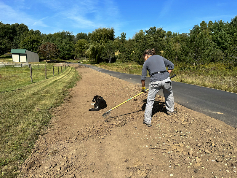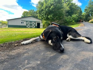 Life on the ranch with our adopted rescue, Asher, is becoming downright charming in the way he now calmly hangs around areas where we are working. Case in point: