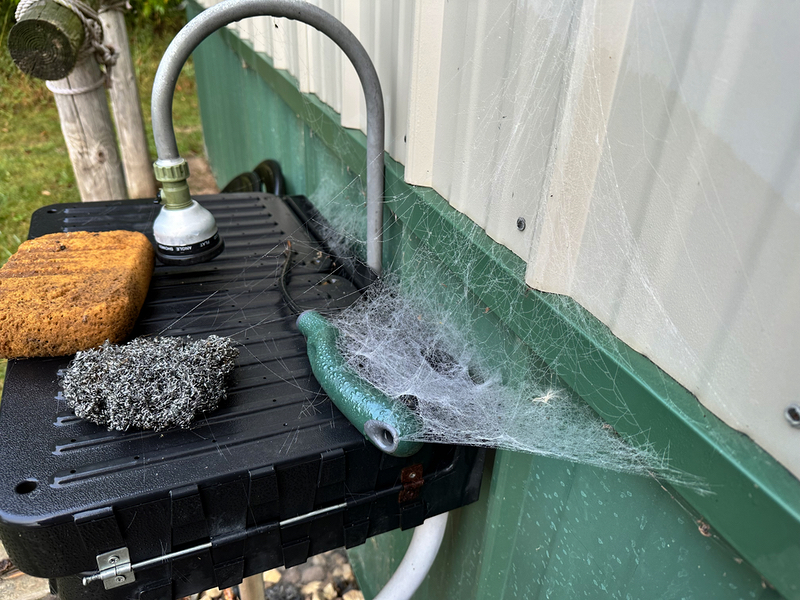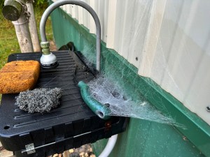 I often complain about walking into the hard-to-see strands of spider web that span our pathways but there are many more webs being built that don’t cross the trails.