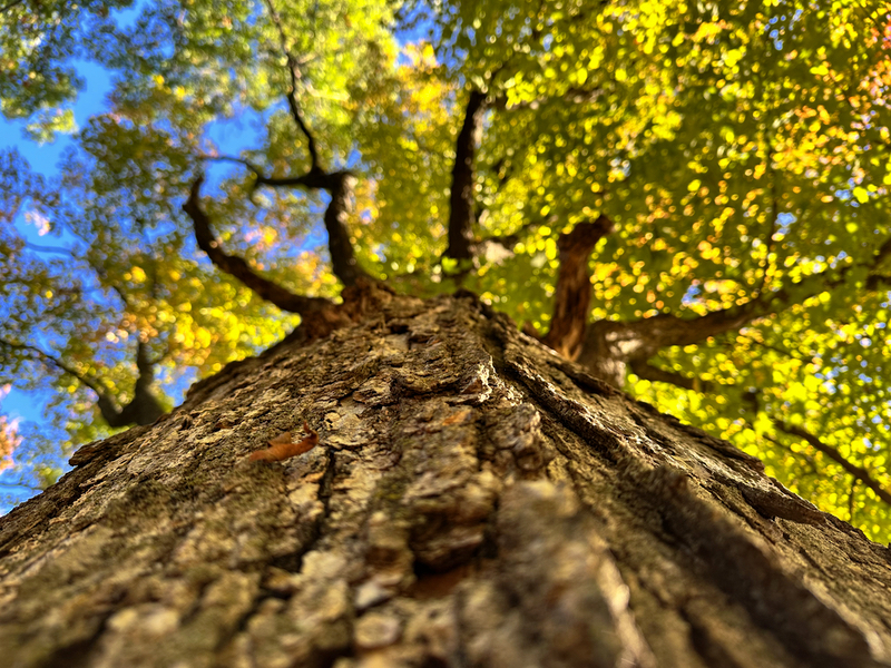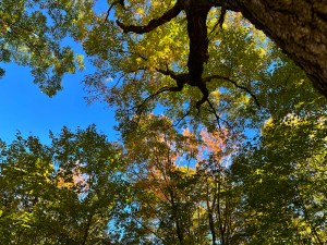 It is easy to see that there are more leaves remaining on the trees in 2023.