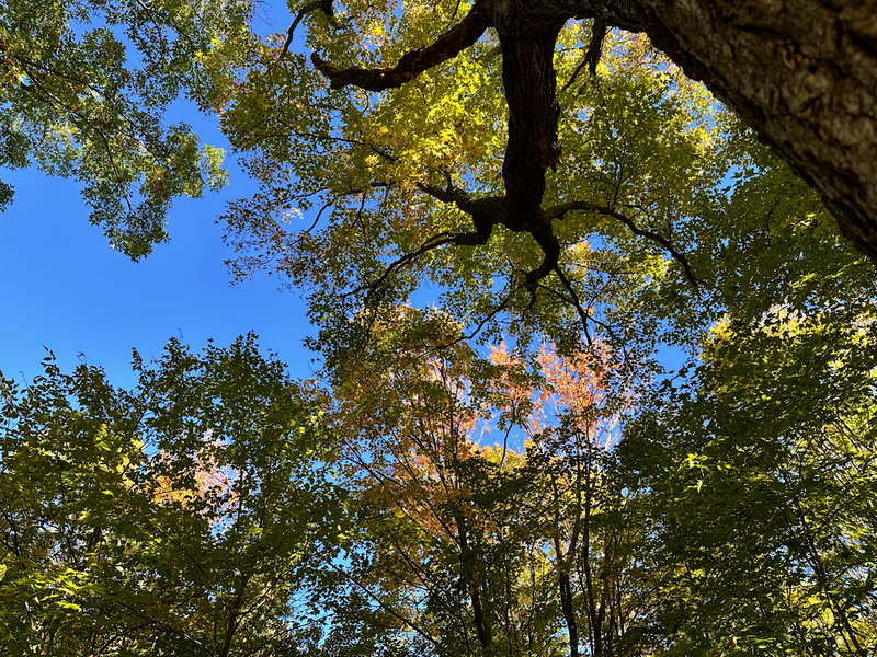 I thought this flipped-over oak leaf with the deep puzzle-shaped recesses was particularly eye-catching. I didn’t recall ever noticing leaves with this shape on tree branches. A few minutes down the trail, boom! There’s a small oak with the same shape of leaves. Doh!