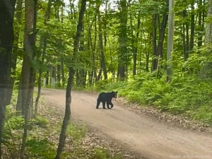 We’ve heard multiple reports of bear sightings on the property. As Cyndie and her niece, Althea were about to leave on a trip to town, the young bear crossed the driveway a short distance ahead of them.