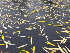 By this morning, everything had dried up and most of those leaves had been scattered by the wind. What a difference a day can make.