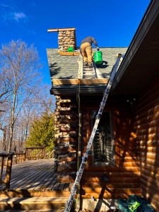 If all goes as planned, today should be the unveiling of our new chimney crown after 4 days of curing. It was Monday when the guys hauled bucket after bucket of cement up three ladders to pour into the frame they constructed around the rocks of our chimney.