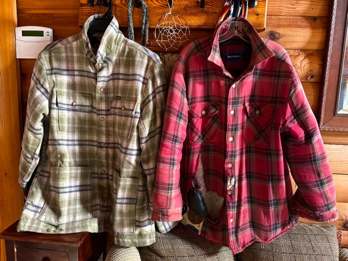On to what I was thinking about posting. Last year, at the end of the winter season, I planned to retire a lined flannel outdoor shirt/jacket that had lost a snap closure and had been given two hand-sewn repairs by Cyndie to stretch its life a little further.