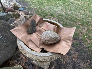 We’ve made progress interrupting the habits of the pigeons under the overhang, but a new irritation has arisen from different birds up at the house. Cyndie thinks it might be a robin because she saw one sitting outside the front door for a long time, and it appeared to get upset with us standing around on the front steps.