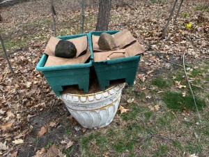 Out in the yard, I found more planters that Cyndie was trying to protect.