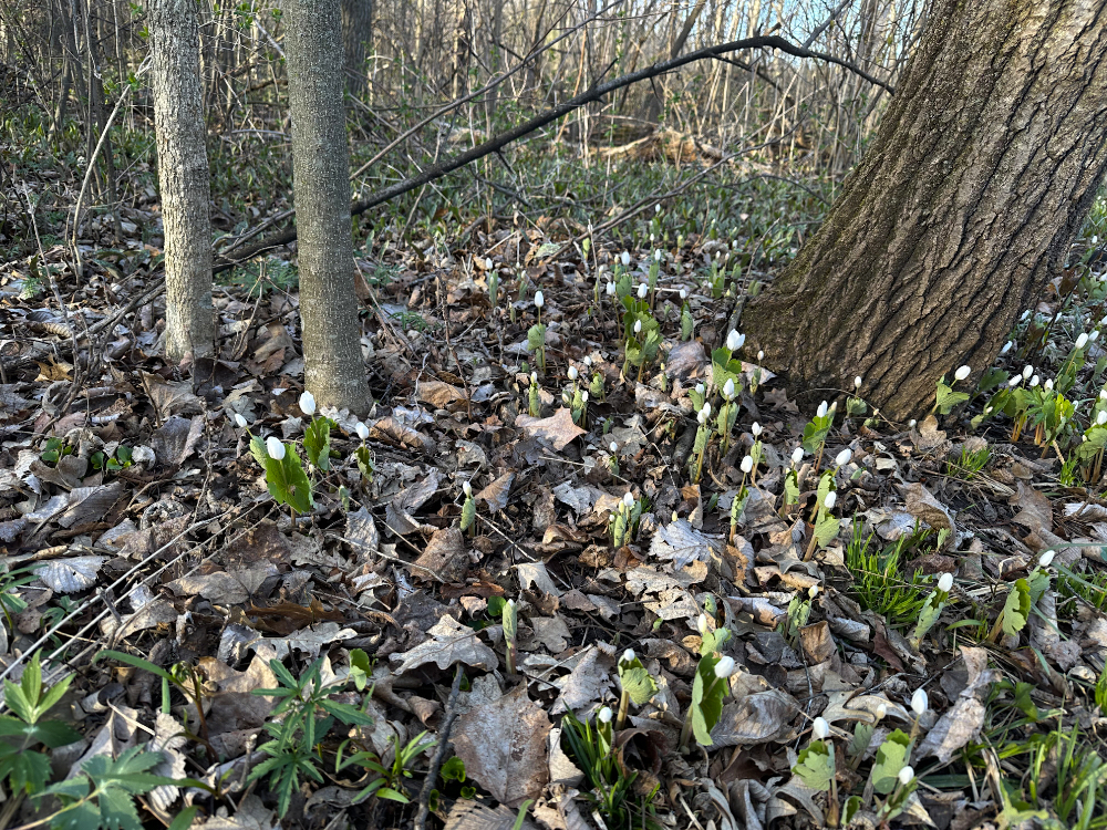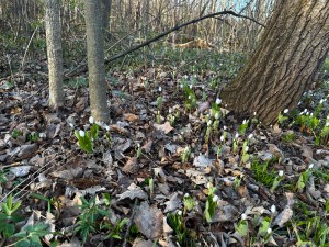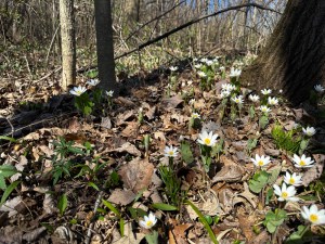 The first forest wildflowers of spring are showing up. The annual blooming of Bloodroot blossoms is always a fun accent to the orchestra of greens emerging after the ground truly thaws.