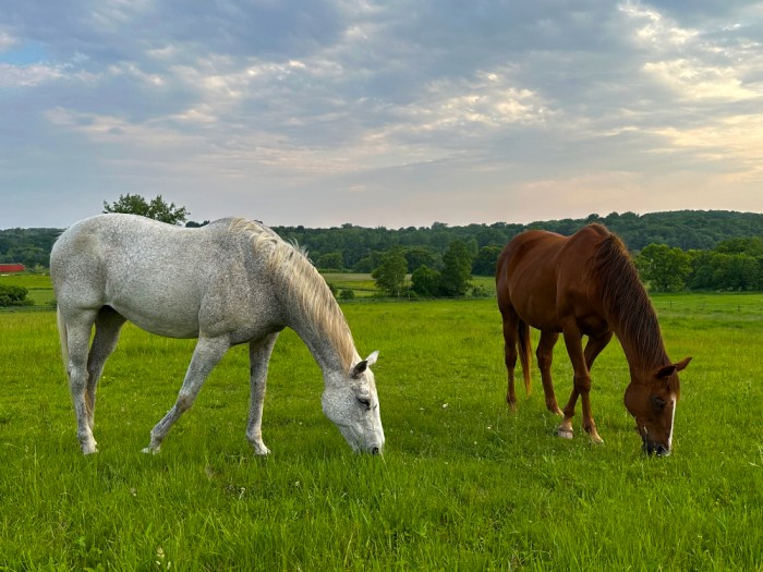 Long after all the excitement had faded, the horses chose to stay in the small paddock, grazing the grass growing there.