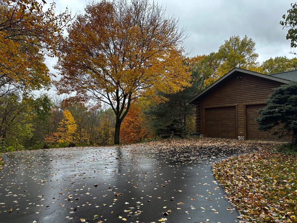 There was a thin crust of ice on Paddock Lake before the sun appeared high enough to melt it. We have plenty of grass that could be mowed once more, but by the time it gets dry, my motivation is nowhere to be found. Instead, I watched from our perch on the hill as our neighbor mowed his.
