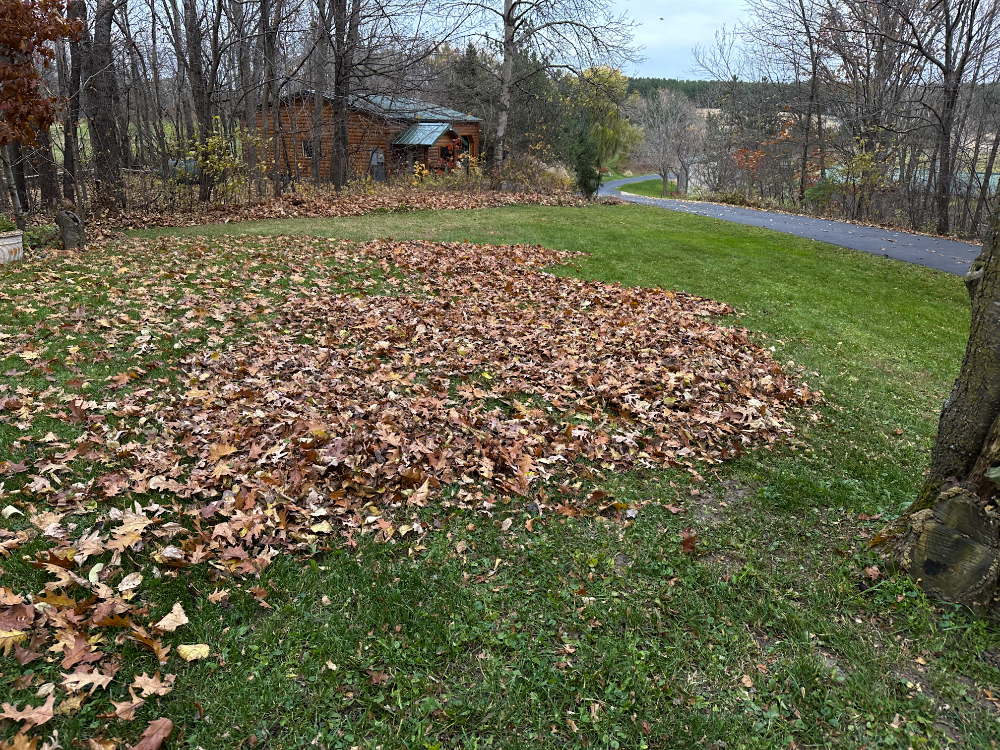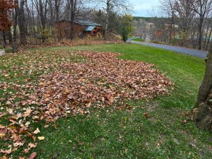 The wind was blowing in my favor; otherwise, I wouldn’t have bothered. Most of the trees, other than the oaks, have dropped the majority of their leaves. Just maybe that’s the last of the lawn raking for the season.