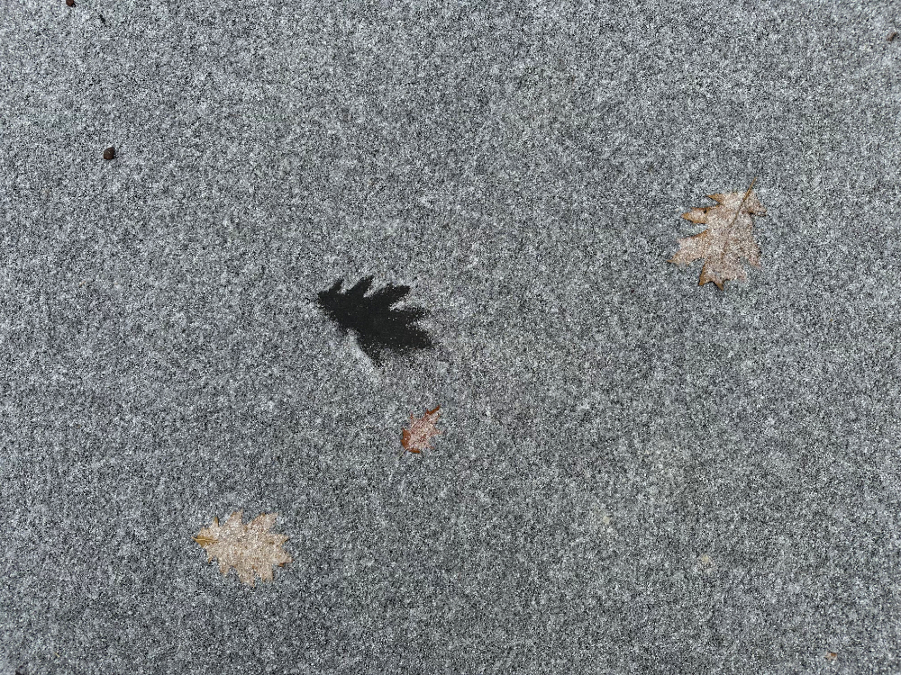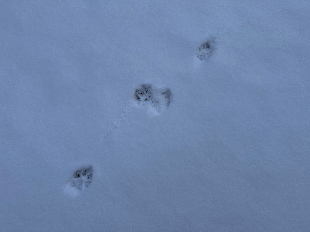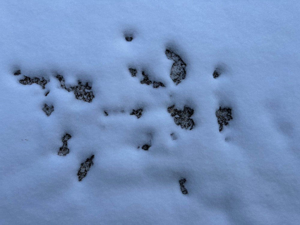 Looking down, here is one scene from the start of falling snow yesterday, and two from this morning: