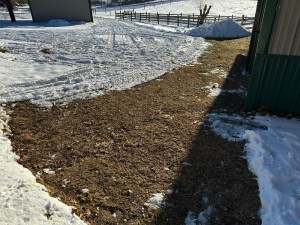 Their coverings were a frozen mess, so we pulled them off, and with no further falling precipitation to speak of, let their bare backs breathe. They seem fine with the situation for now, but it has made it nearly impossible to clean up their manure to my usual level of detail.