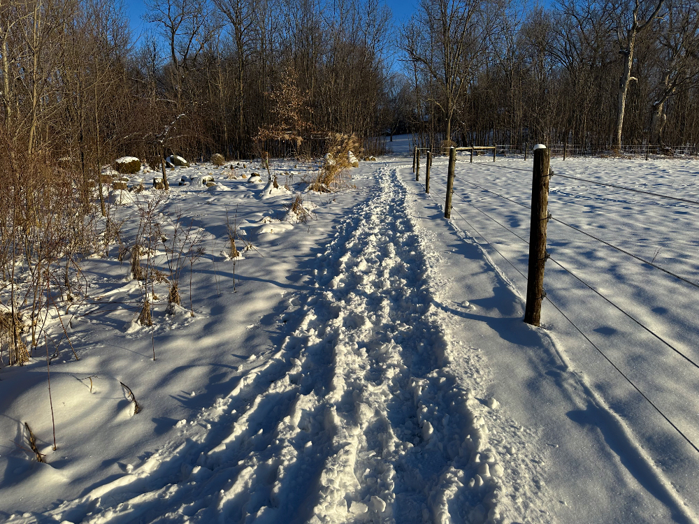 The conditions have been decidedly spring-like in the way the snow began melting the moment the storm was over. By afternoon in the area in front of the barn where I shoveled, the ground looked as dry as if it had never snowed.