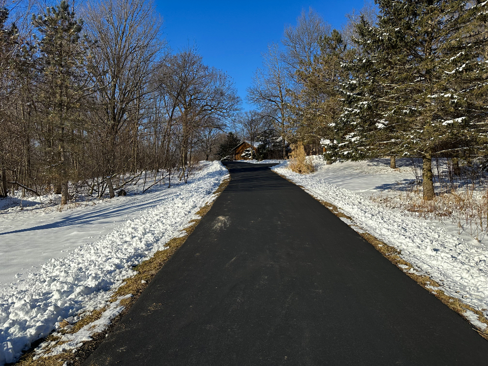 Beyond that space where the snow remains are the tracks I made with multiple passes on the ATV. Instead of plowing over the gravel, I just drove back and forth a few times.