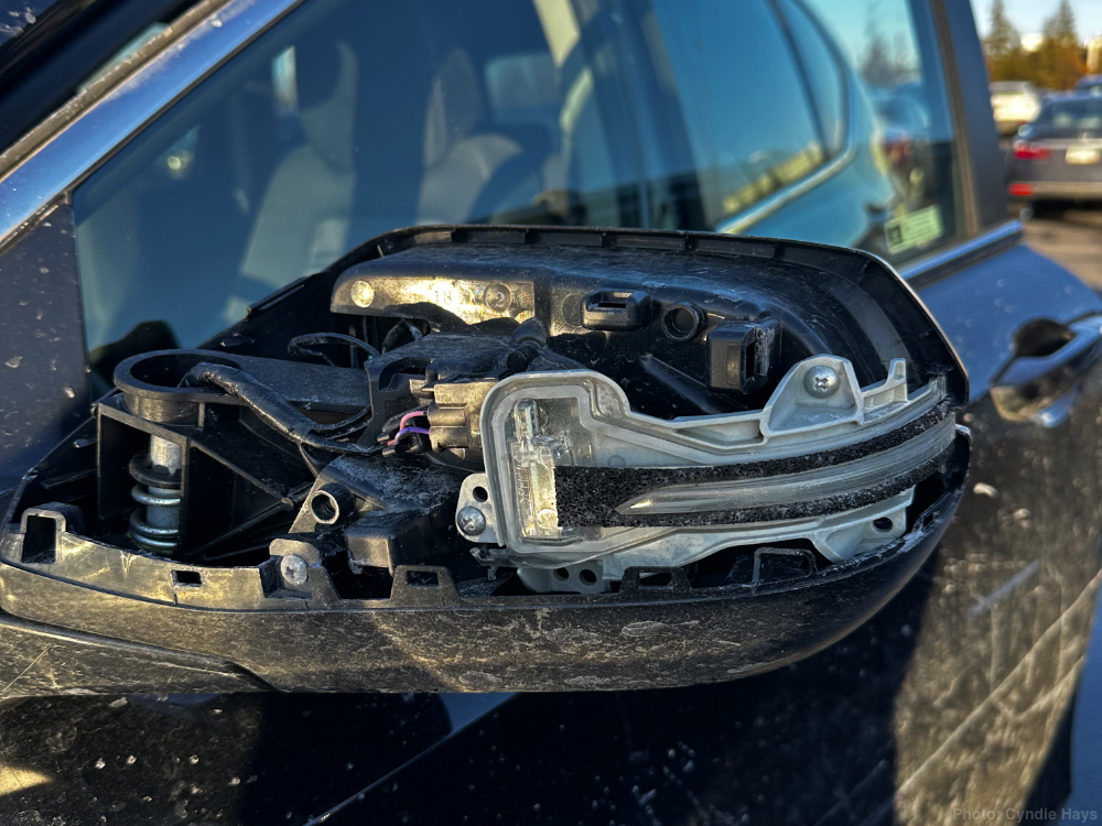 Adding one more drama to our expense concerns, yesterday Cyndie found that the cover of one of the side mirrors on her car was missing. It’s beginning to feel like the universe is trying to tell her something. First, the rear spoiler was ripped from her car, then a fraudulent purchase of over $8000 was made on her credit card. Now the mirror cover needs replacing.