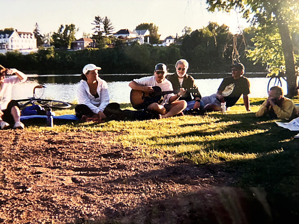 In the photo, I am playing guitar, surrounded by people I recognized from years of riding the annual June “Jaunt with Jim” bike adventure. The image failed to trigger any specific memory of the moment depicted. Curt texted that 2003 was written on the back.
