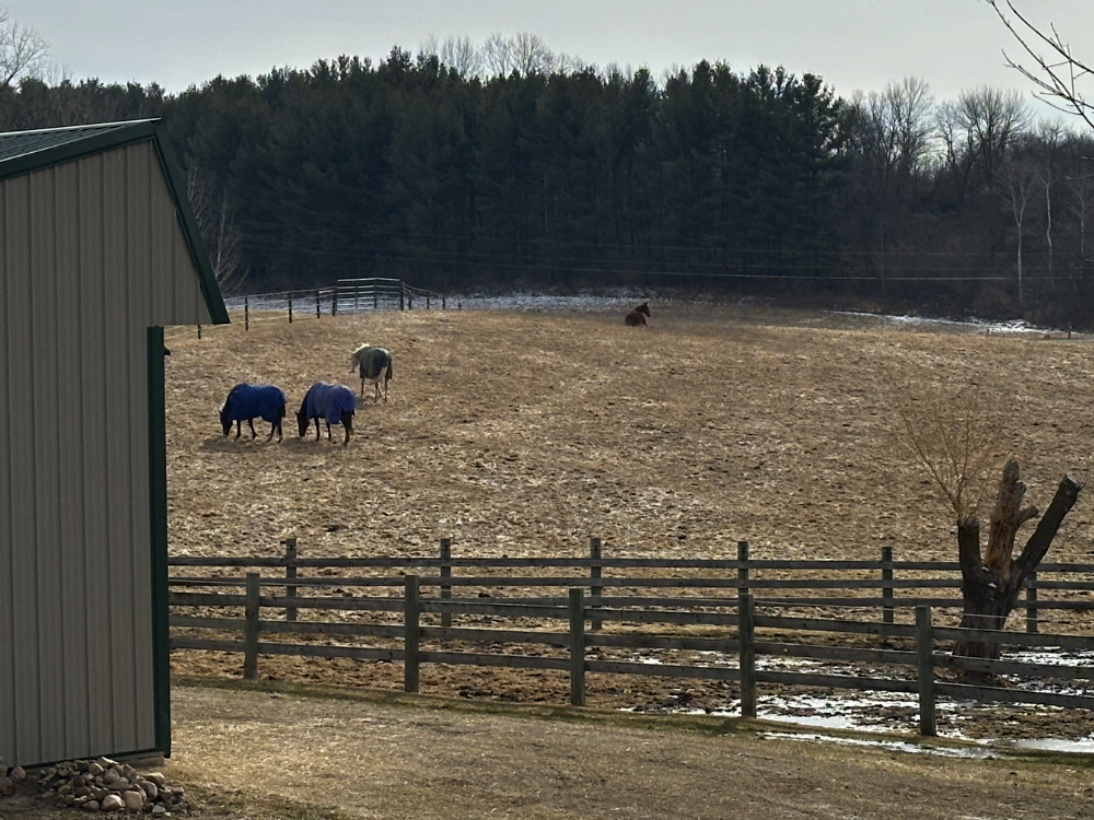 That picture above shows the typical fracture in the herd these days. Mia is the odd horse out, per usual.