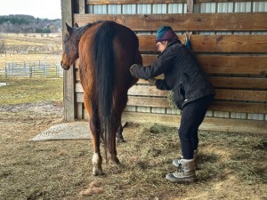 Thank goodness we’ve got the horses to warm our hearts, no matter what version of early spring weather is dished out. They don’t let the mud underfoot bother them. No, they consider it a valuable asset for skin and hair treatments.