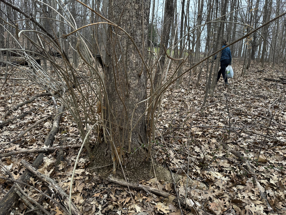 Since I tend to get overwhelmed when the invasives we are after show up everywhere I look, I let Cyndie focus on the garlic mustard, and I kept an eye out for vines on tree trunks. Even though I felt sure I had already scoured the area we were in for vines visible at the base of trees, I kept finding a remarkable number of cases.