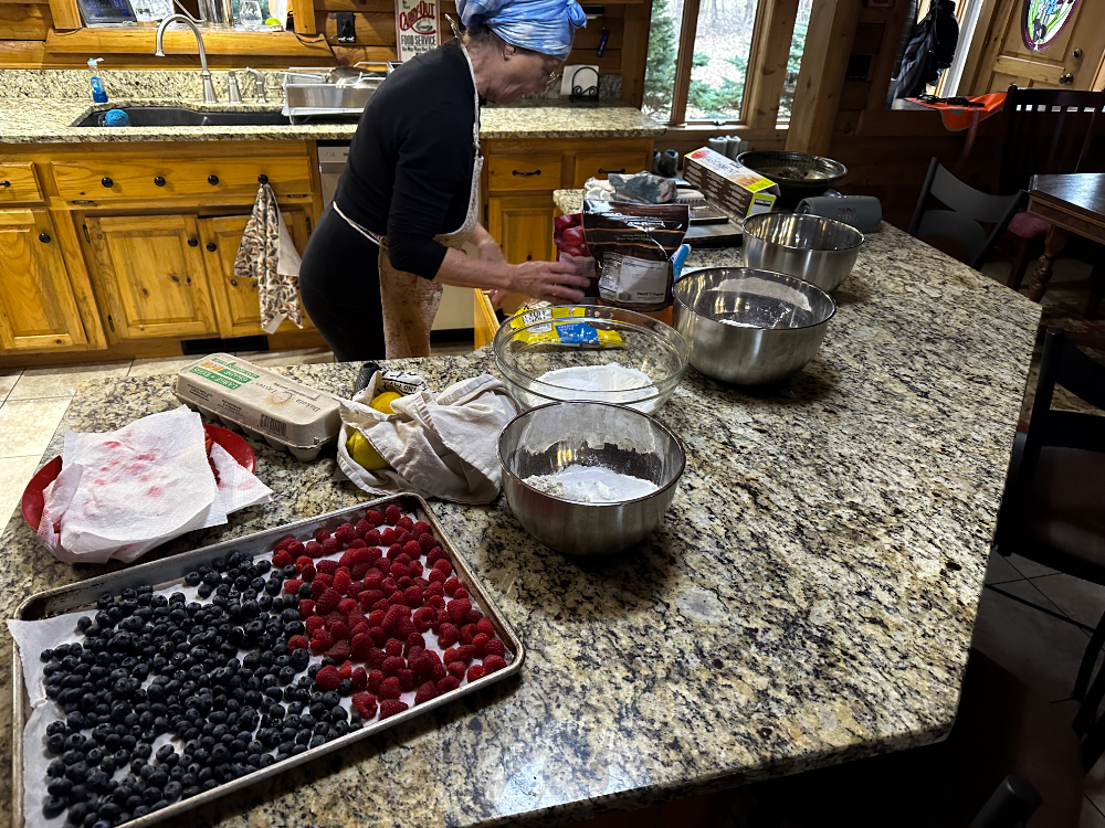 The reality in the kitchen this morning is a full-on production of Cyndie’s popular scones being baked.