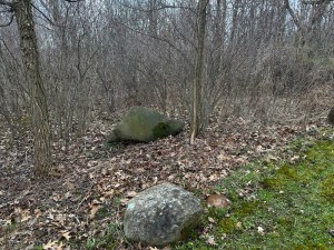Cyndie wanted to make a mossy boulder in the brush beyond the labyrinth more visible, so I trimmed away the shoots growing up in front of it. I have no idea if its glory will continue to stand out once all the leaves around it show up, but it is worth a try. It is a beautiful specimen.