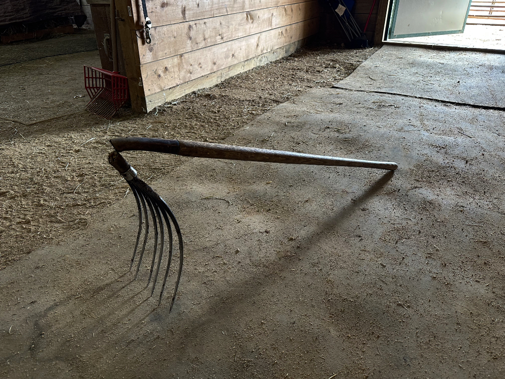 I inadvertently made a new version of a pitchfork the other day while turning the manure pile inside the large paddock.