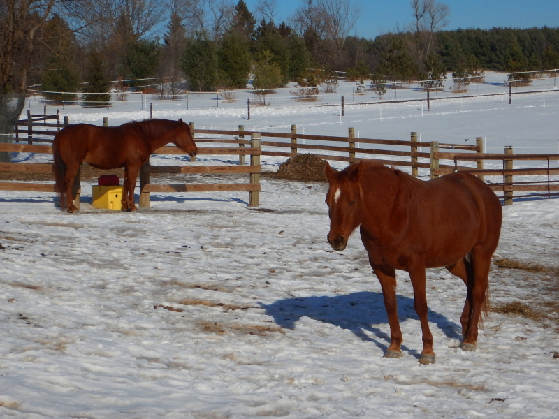 Yesterday morning we awoke to double-digit below-zero temperatures. It was probably the coldest night we have left the horses outside to endure. They did have their blankets on, and despite significant frost on their faces from their breath and some nasty snow/ice buildup on the bottoms of their hooves, they seemed to have handled it fine.