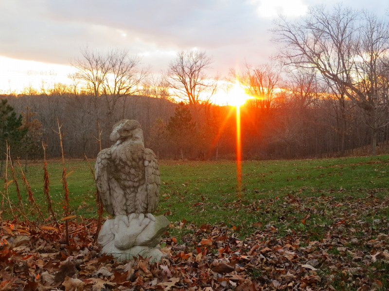 As I strolled up the driveway yesterday afternoon, the eagle statue caught my eye and it occurred to me that I should consider moving it for the winter. We have placed it in a spectacular spot at the top of the driveway, but during the snow season that spot is right where plowing pushes the snow.
