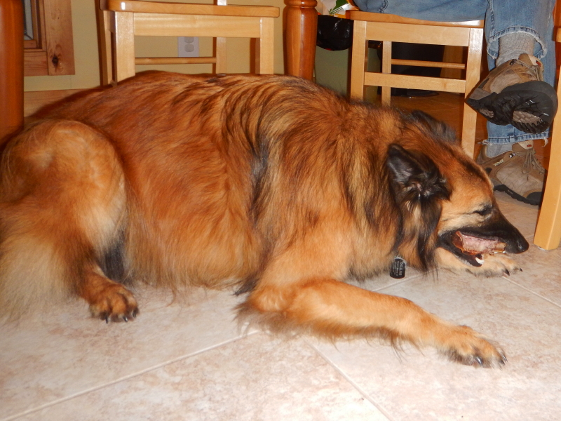 After a fantastic steak dinner, he offered Delilah a bone to chew. I think I noticed her swooning over him. She has a new best friend.