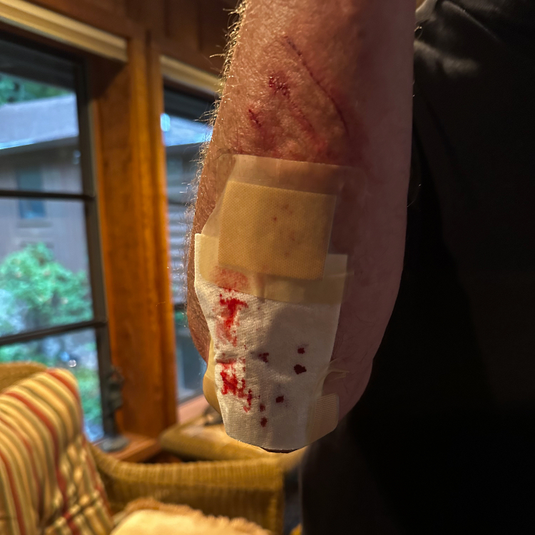 I suspect his Parkinson’s is playing more and more of a role in his occasions of close encounters with the unforgiving earth while bike riding, but Paul ending up on the ground during bike rides has been happening for as long as we have shared time as cyclists.