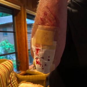 “Hello, honey…” Nice surprise for her. Beth is as stoic as Paul, and they packed his stuff up and headed off for the next adventure without much fuss. Paul texted an update that they visited the ER in Marquette, and he was given the okay to continue with ride plans after fresh applications of antiseptic and clean bandages. No stitches required.